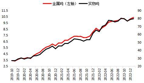 2023年2月开始,浙江、江苏、湖北等地多家企业开始扩产或新投精炼镍产线,新疆地区冶炼厂有望复产,金川集团亦计划增产,预计2月国内产量将大幅增加至16800吨,环比上涨15.86%,同比上涨18.20%。(数据来源:我的有色)