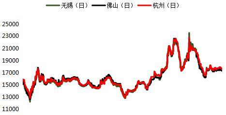 不锈钢现货价格震荡下行。现货截止出稿,无锡300冷轧卷板报价为17450元/吨,佛山300冷轧卷板报价为17300元/吨,杭州300冷轧卷板报价为17550元/吨,上海300冷轧卷板报价为17550元/吨。