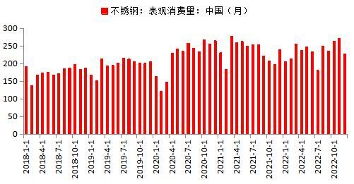 中国不锈钢2022年表观消费量为2821万吨,而去年同期为2839万吨,下降了18万吨。