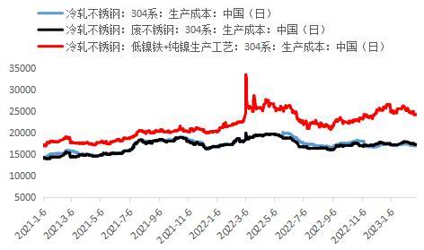目前304不锈钢生产成本有所下降。传统304生产成本16801元/吨,废不锈钢生产成本在17180元/吨,而镍加低镍铁的成本在24146元/吨。所以对比可知,当下镍加低镍铁的生产模式成本很高,很难成为钢企的选择。