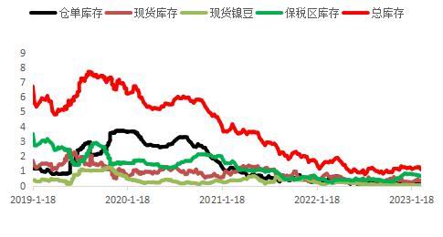 2023年2月23日中国14港镍矿库存总量为836.93万湿吨,较上期减少46.40万湿吨,降幅5.25%。其中菲律宾镍矿为804.17万湿吨,较上期减少39.66万湿吨,降幅4.70%;其他国家镍矿为32.76万湿吨,较上期减少6.74万湿吨,降幅17.06%。(来源:我的有色)